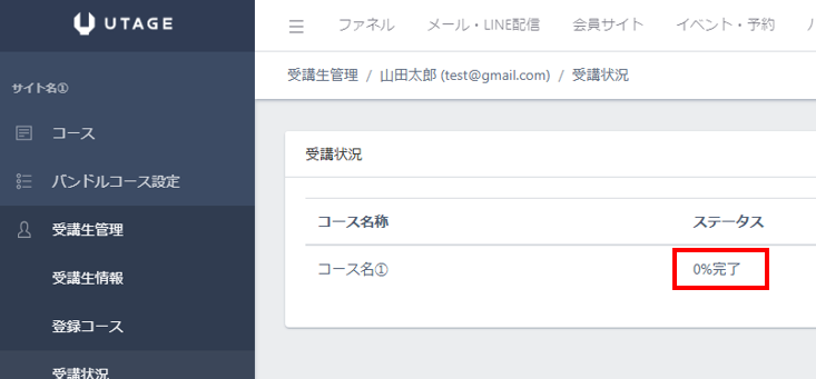 受講生側は自分の進捗率を