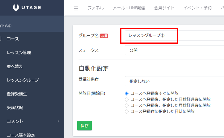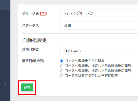 コースの作成の時と同様に、レッスングループも以下の自動化設定が可能です。