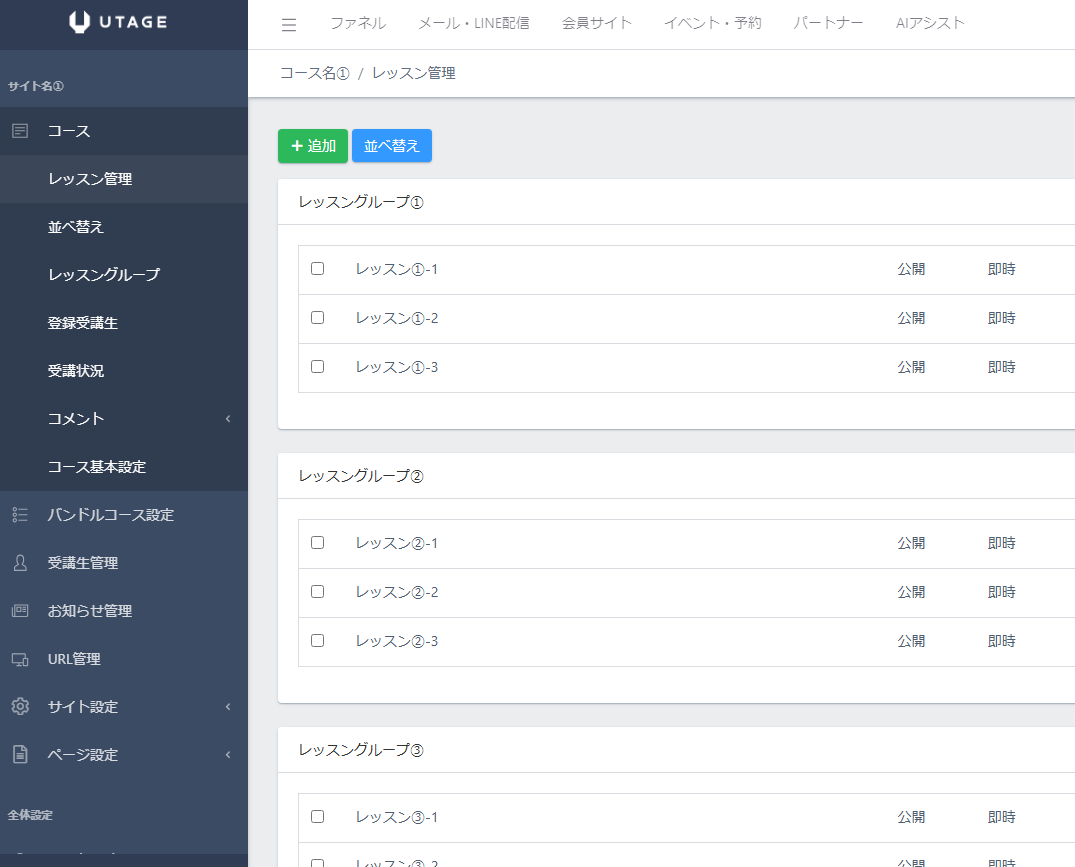 などのサービスを使う必要がなく、UTAGEだけでいくつも会員サイトを作成することができます。