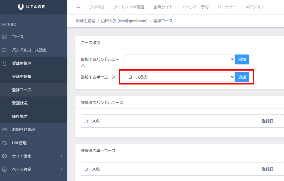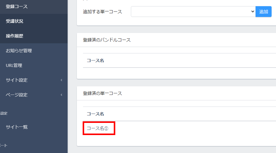 「登録済の単一コース」に追加したコース名が表示されます。