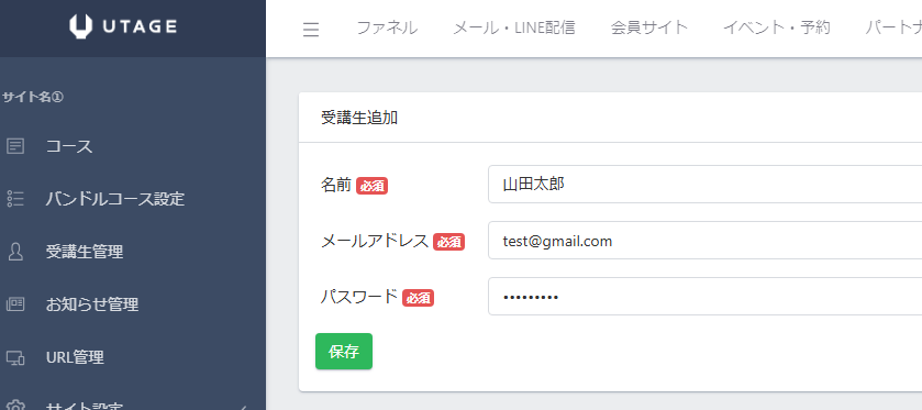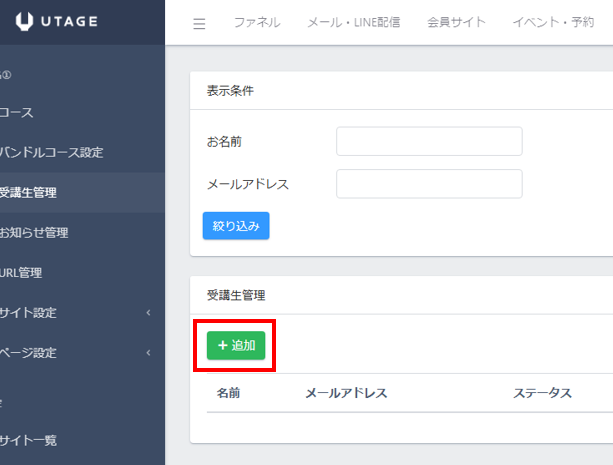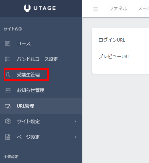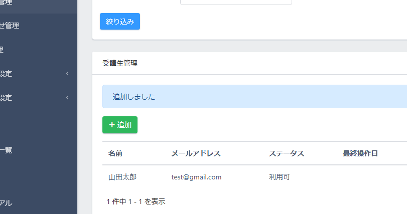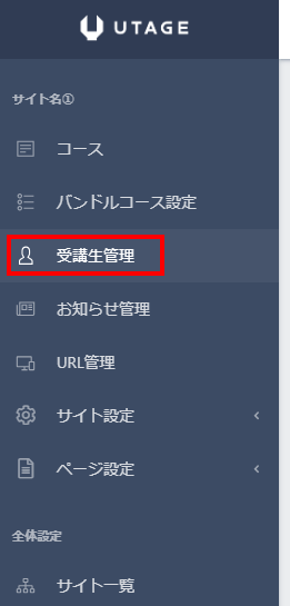 左メニューの「受講生管理」をクリックします。