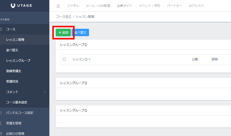 ② 会員サイト内にコースを作成する