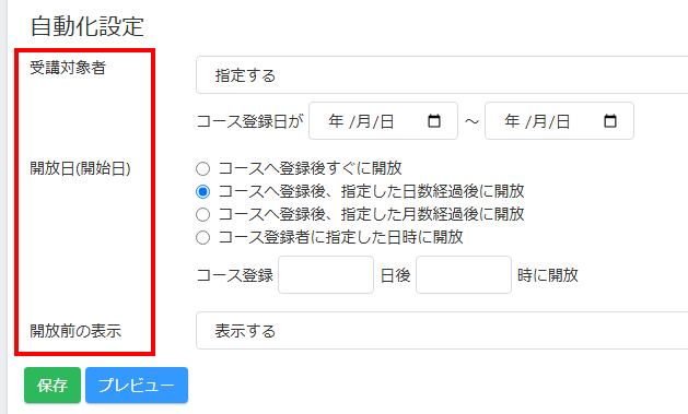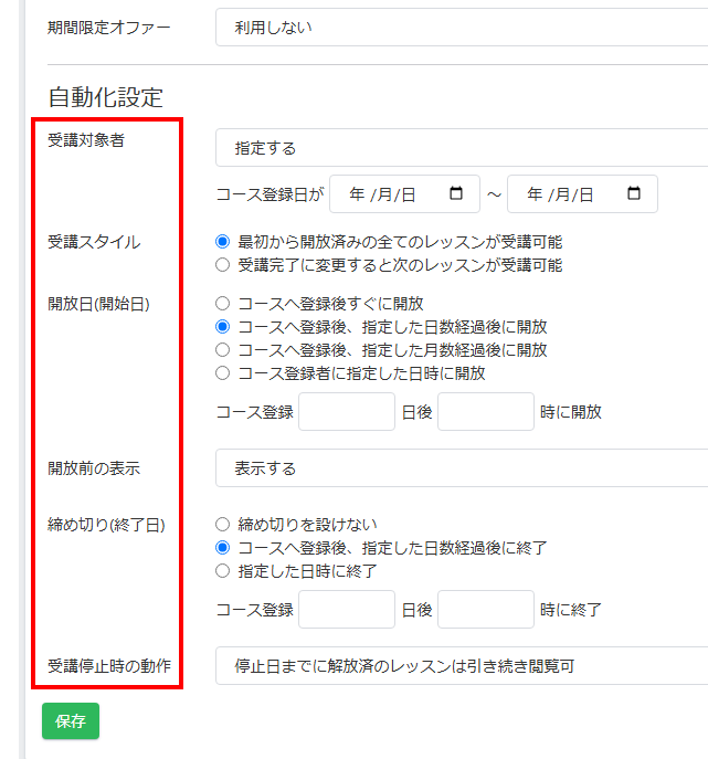 ・受講対象者(コース登録の期間を指定できます)