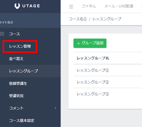 レッスンを格納する前に、まずレッスングループを作成します。(レッスングループは、章のタイトルや見出しのようなイメージ)