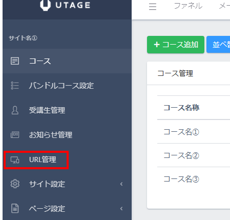 左のメニューの「URL管理」をクリックします。