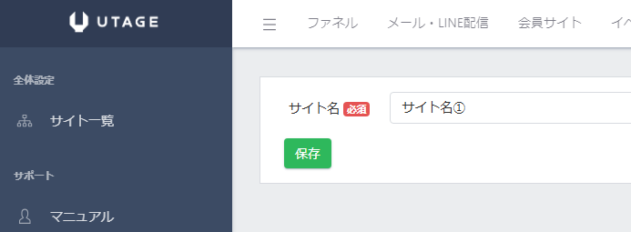 「サイト名」に任意の会員サイト名を入力し、保存をクリックします。(ここでは「サイト名①」とします)