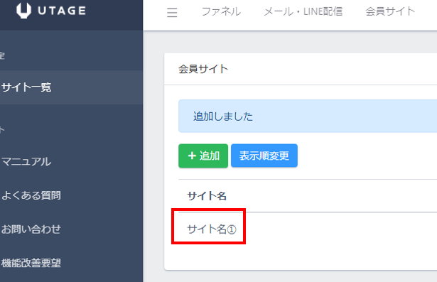 作成した会員サイト名をクリックします。