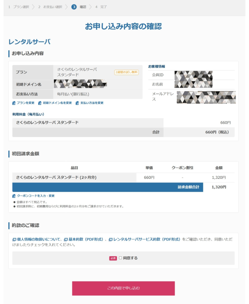 さくらのレンタルサーバーの申し込み手順を解説します。